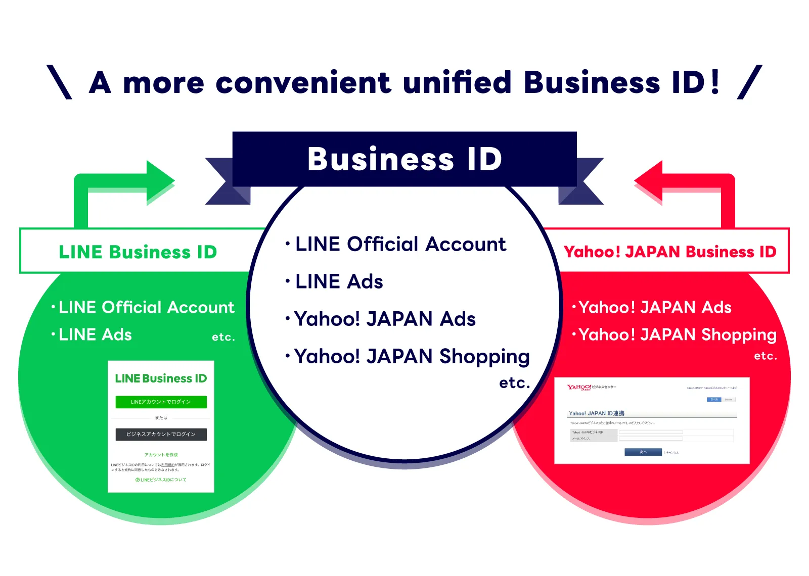 Starting from June 30, 2025, "LINE Business ID" and "Yahoo! JAPAN Business ID" will be unified and changed to the new integrated "Business ID".This means you'll be able to access both LINE and Yahoo! JAPAN corporate customer services using this unified "Business ID".