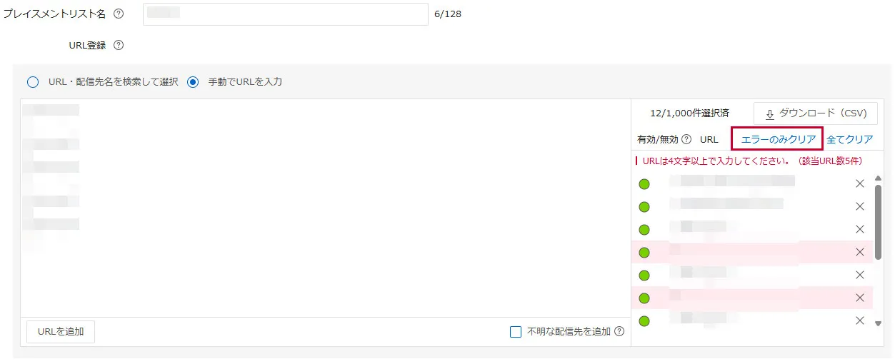 You can now click “Clear errors only” to remove all error-targeted URLs at once.