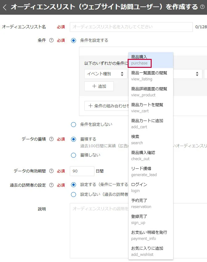 Show the event name associated with the event type on the audience list creation view