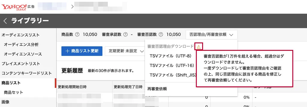 We improved the description of "Disapproved" in Dynamic Ads for Display to make it easier to understand. If the number of disapprovals exceeds 10,000, a warning icon and message now appear.
