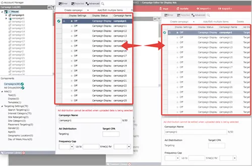 Multiple windows will open for each account in Campaign Editor for Display Ads. This will enable you to work efficiently by comparing multiple different accounts.